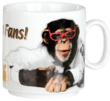 Trigema - Maskottchen Mr. Chimp grüßt seine Fans: Porzellantasse mit witzigem Affendruck |